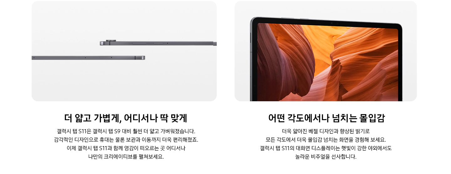 특히 베젤이 줄어들고 화면비가 더욱 넓어진 덕분에 콘텐츠 몰입감이 한층 더 높아졌고, 베이지, 그레이, 블랙 등 다양한 컬러 옵션도 선택의 폭을 넓혀주고 있습니다.