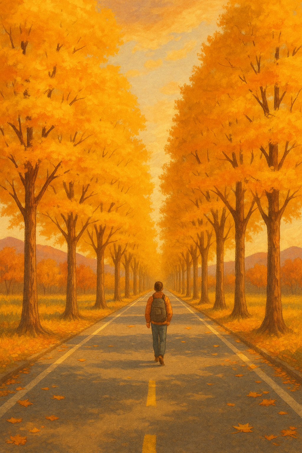 차 대신 천천히 걸어보세요 — 발끝마다 낙엽이 바스락거립니다.