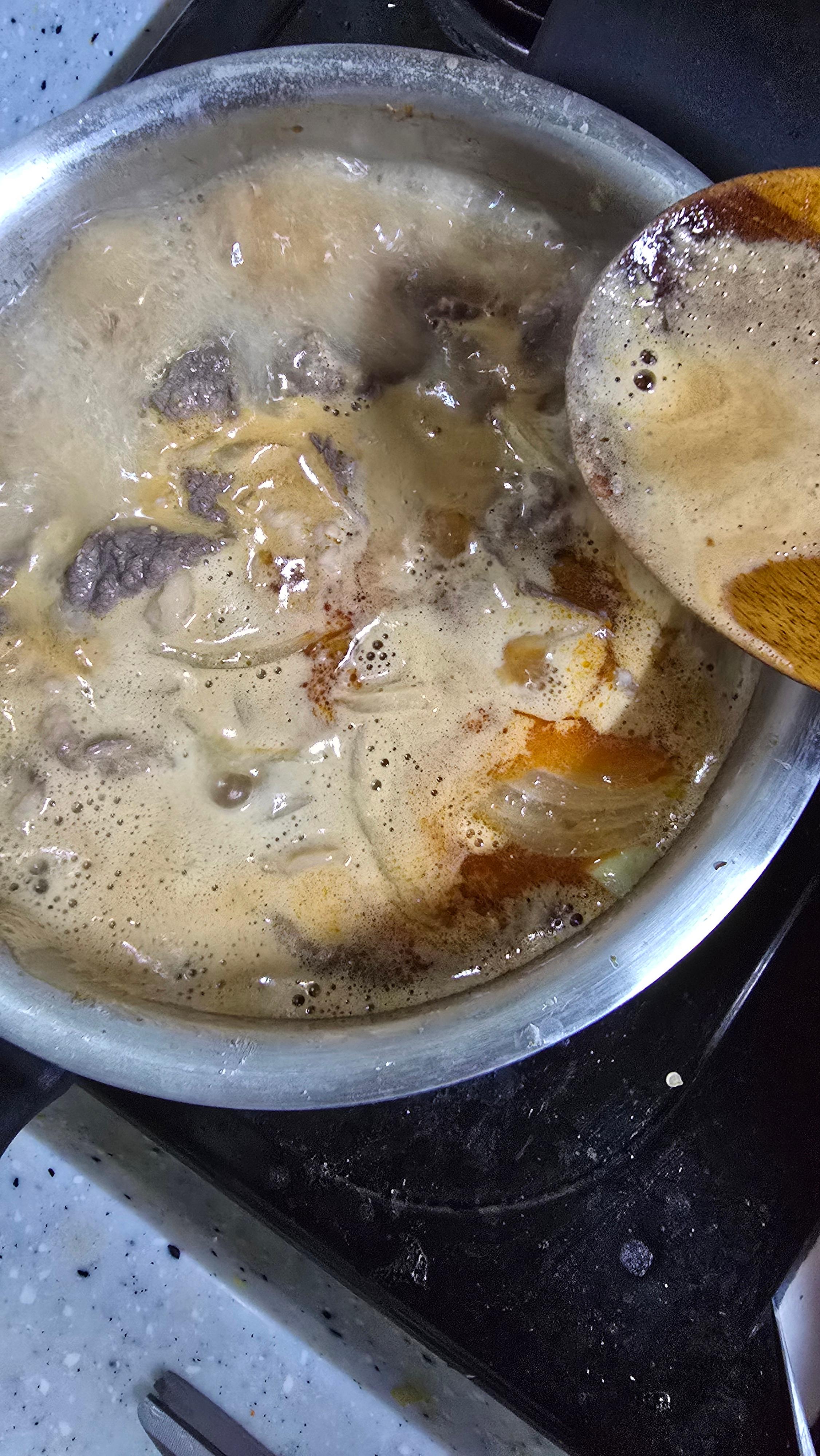 끓기 시작하면 거품을 한 번 걷어주세요.