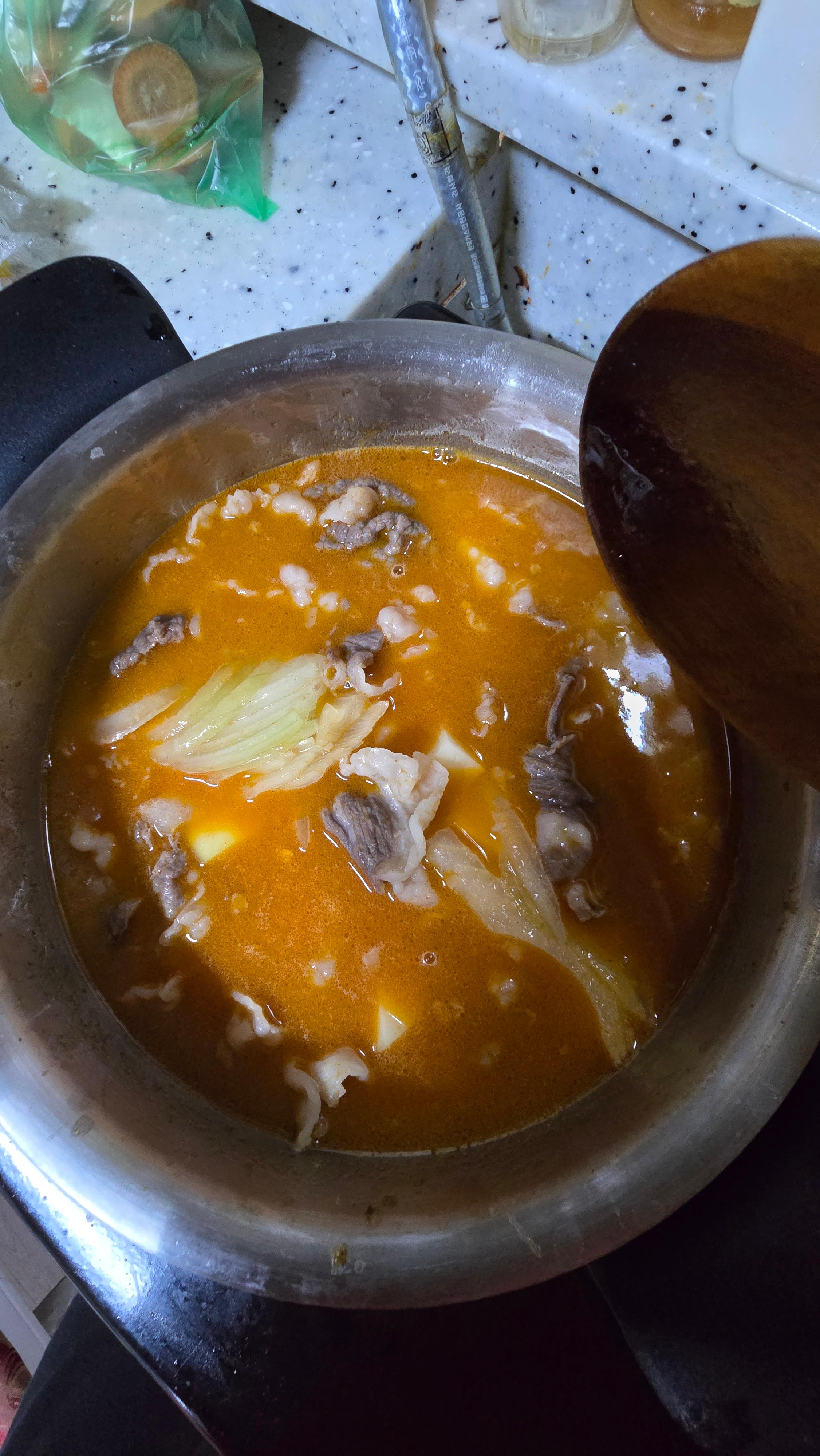 끓이는 동안 퍼지는 고소한 차돌 향,